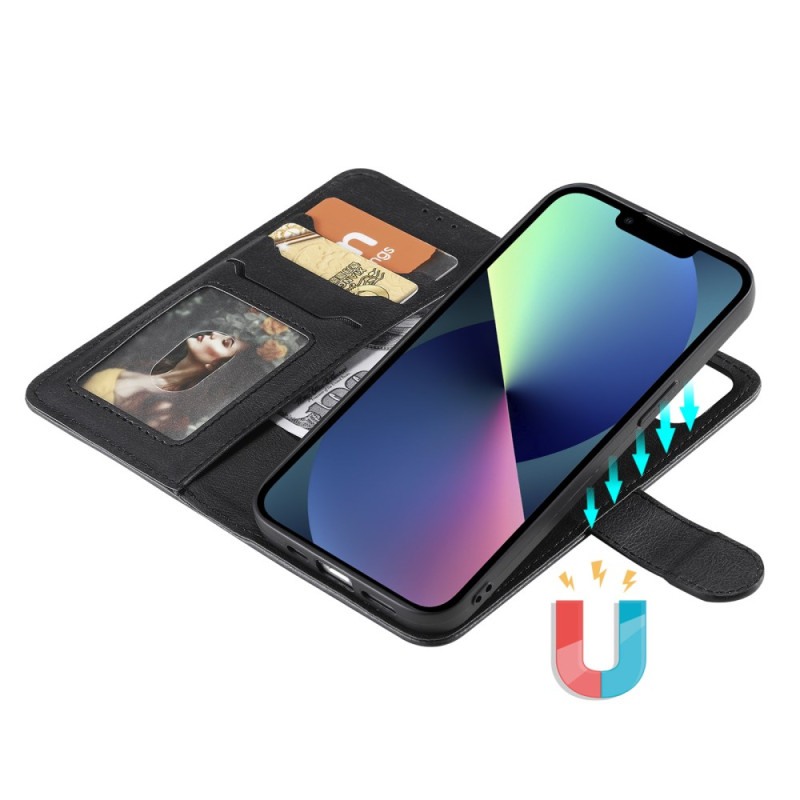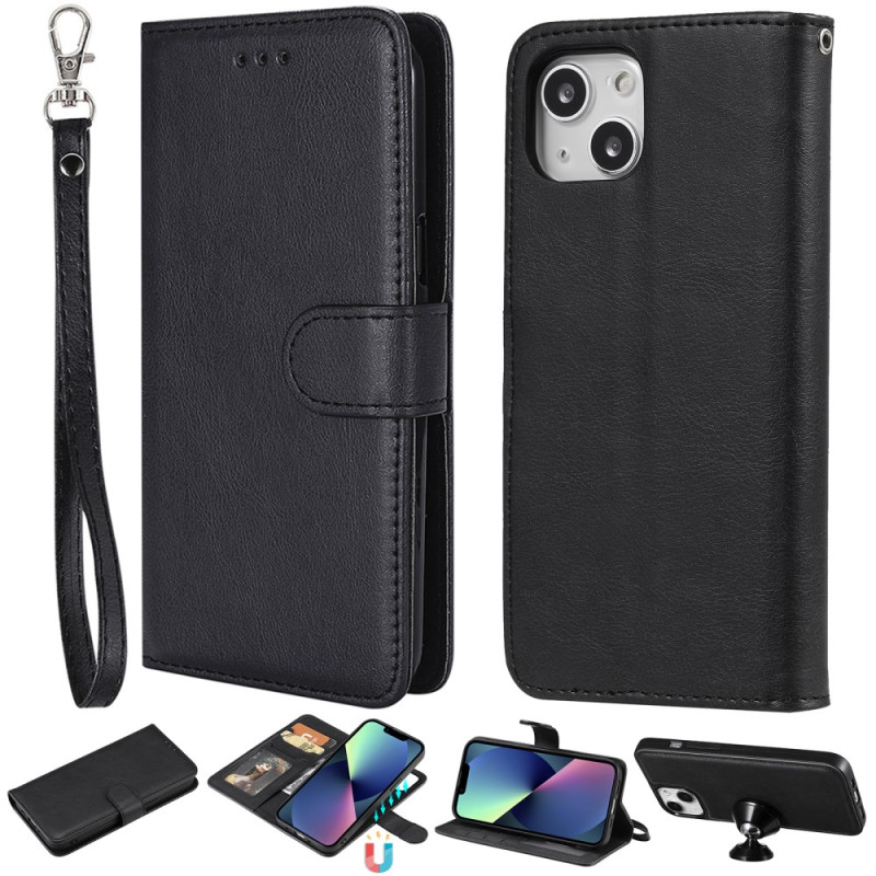 Versátil funda 2 en 1 para iPhone 13 Mini que combina una elegante cartera con una parte trasera magnética extraíble. Disfruta de múltiples compartimentos para tarjetas y efectivo, una función de soporte y una práctica colgante de mano para simplificar el uso diario.
