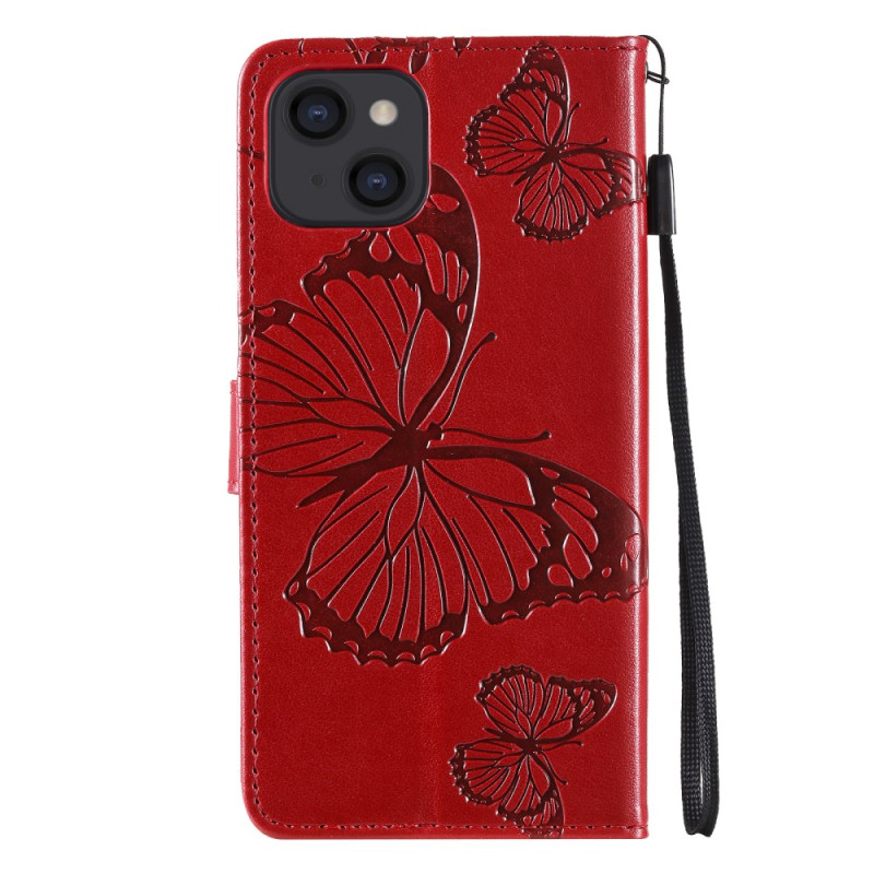 Funda cartera de piel de PU de primera calidad para iPhone 13 Mini con elegante motivo de mariposa grabado. Incluye 2 ranuras para tarjetas, compartimento lateral, función manos libres y práctica colgante de mano para una protección completa y con estilo.