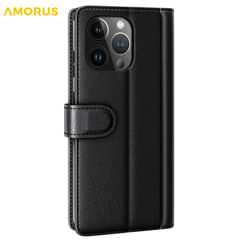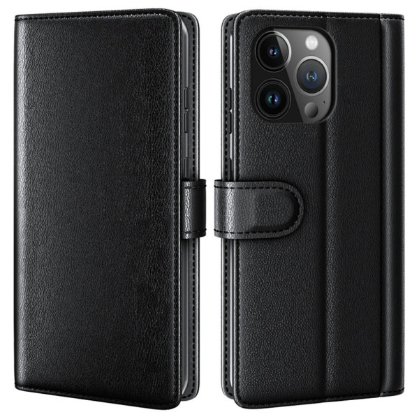 Protege tu iPhone 13 Pro Max con estilo con esta funda cartera de piel auténtica. Con 3 ranuras para tarjetas, un bolsillo para billetes y un práctico soporte plegable, combina elegancia con practicidad para el día a día.