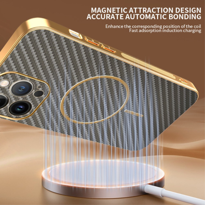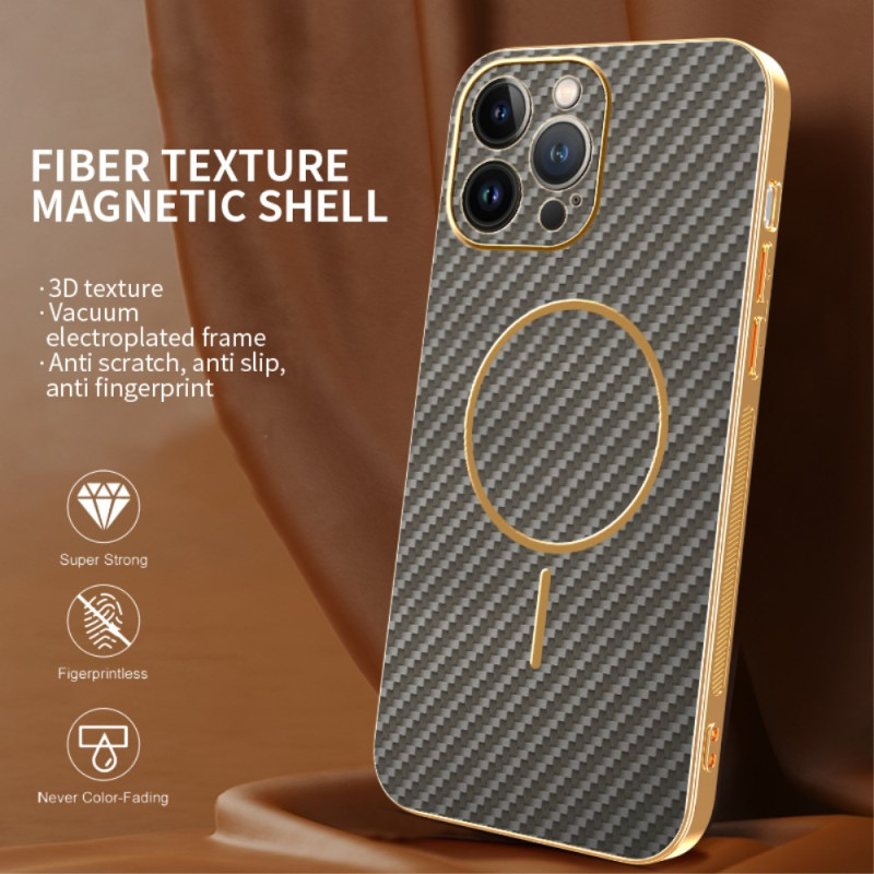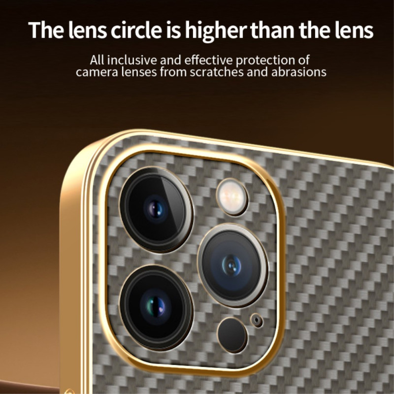 Protege tu iPhone 13 Pro Max con estilo con esta funda de TPU resistente y flexible. Su acabado galvanizado de primera calidad y su textura de fibra de carbono ofrecen una protección óptima contra los impactos a la vez que resisten las huellas dactilares.