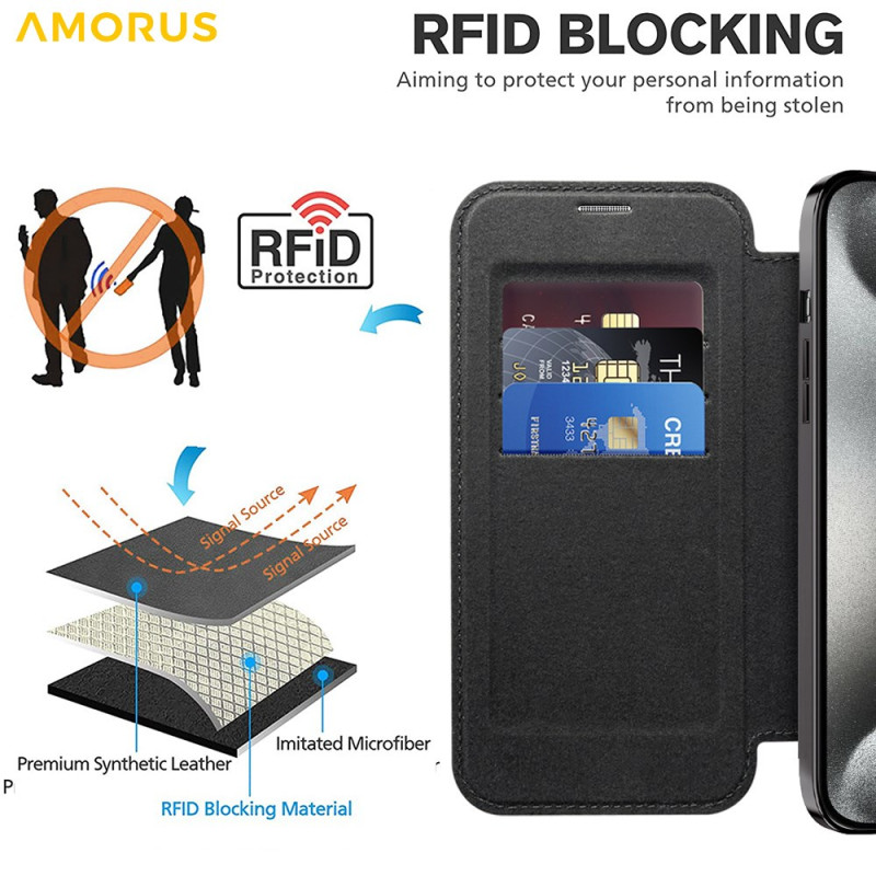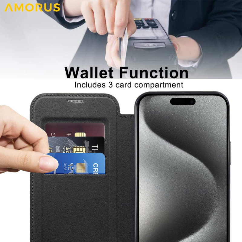 Protege tu iPhone 13 Pro Max con estilo con esta funda de piel de primera calidad compatible con MagSafe. Con tarjetero integrado y tecnología de bloqueo RFID, combina elegancia y seguridad para tu día a día.