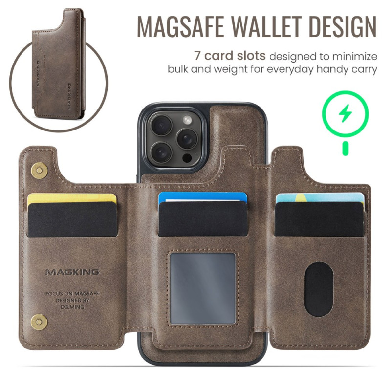 Descubre la funda MAGKING K3 Series para iPhone 13 Pro Max: una innovadora funda 2 en 1 con una cartera magnética desmontable compatible con MagSafe. Disfruta de soporte ajustable, protección anti-RFID y 7 ranuras para tarjetas.