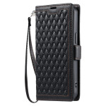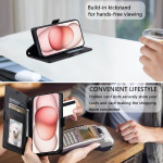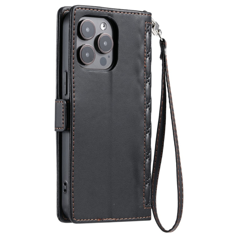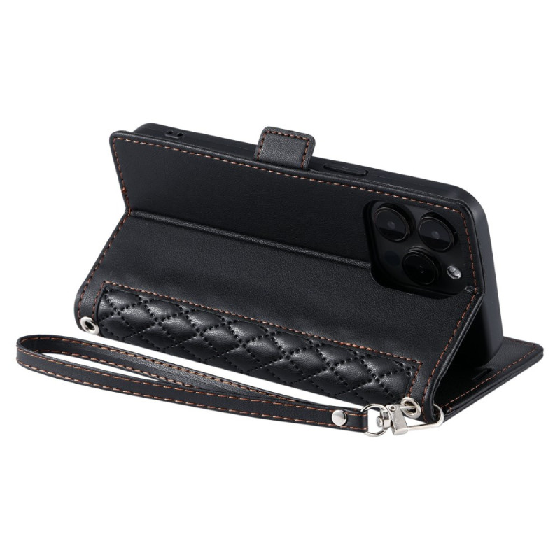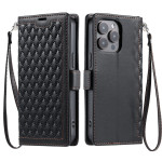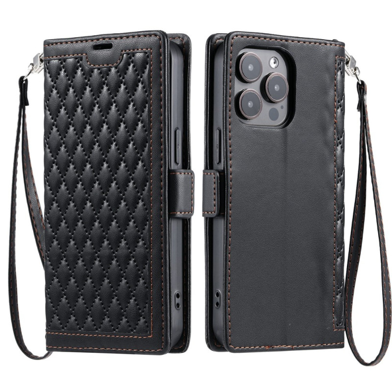 Elegante funda cartera para iPhone 13 Pro Max con refinado estampado de diamantes. Con 3 ranuras para tarjetas, 1 bolsillo para efectivo y una práctica colgante de mano. Se transforma en un soporte manos libres para ver tus contenidos cómodamente.
