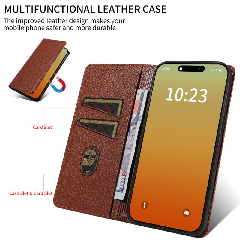 Elegante cartera de piel de PU con protección RFID integrada. Dispone de 2 ranuras para tarjetas, 1 bolsillo para efectivo y un potente cierre magnético. Su diseño plegable sirve de soporte ajustable para tener las manos libres.