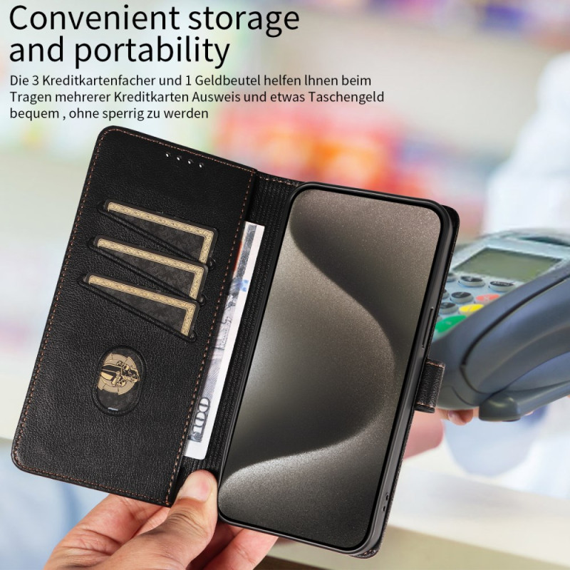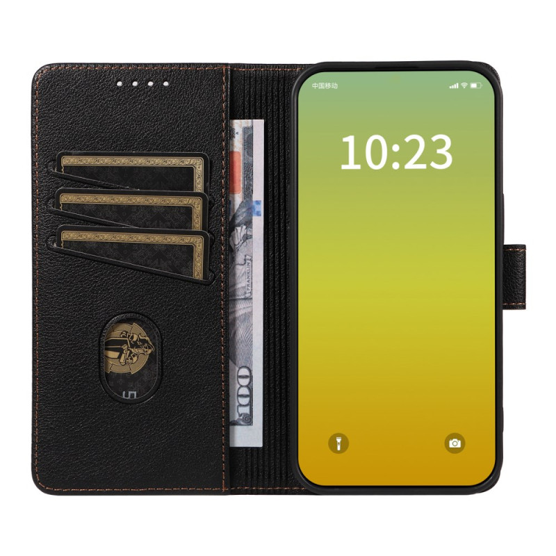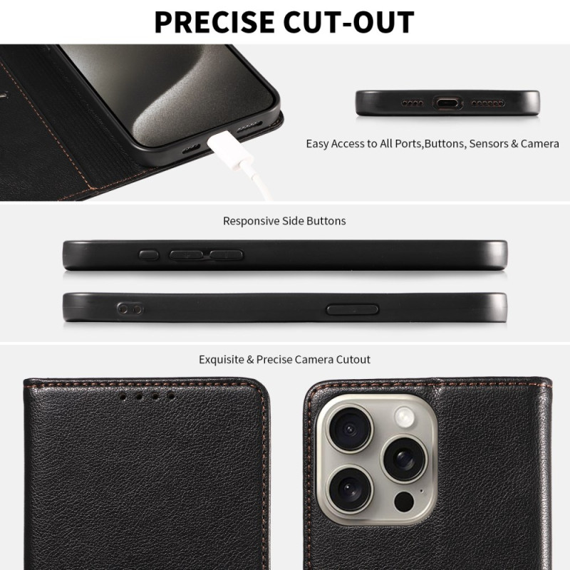 Protege tu iPhone 13 Pro Max con estilo con esta funda monedero de piel de PU con textura de lichi. Incluye 3 ranuras para tarjetas con bloqueo RFID, un bolsillo para el efectivo y soporte manos libres. Cierre magnético seguro y protección total contra golpes y arañazos.
