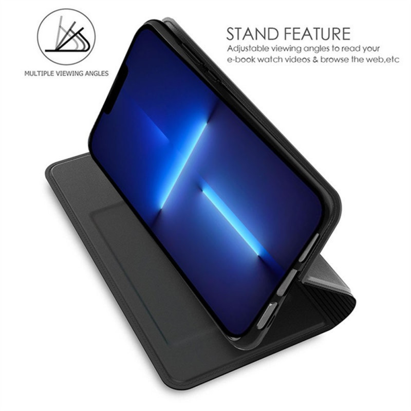 Protege tu iPhone 13 Pro Max con estilo gracias a esta funda multifunción en piel de PU con textura de seda. Con tarjetero integrado, soporte ajustable y cierre magnético seguro, este accesorio combina practicidad con una protección óptima.