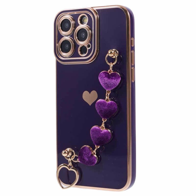 Protege tu iPhone 13 Pro Max con estilo con esta funda de TPU suave con acabado electrolítico brillante. Su refinado diseño incluye una colgante de mano en forma de corazón y bordes elevados para proteger la cámara.