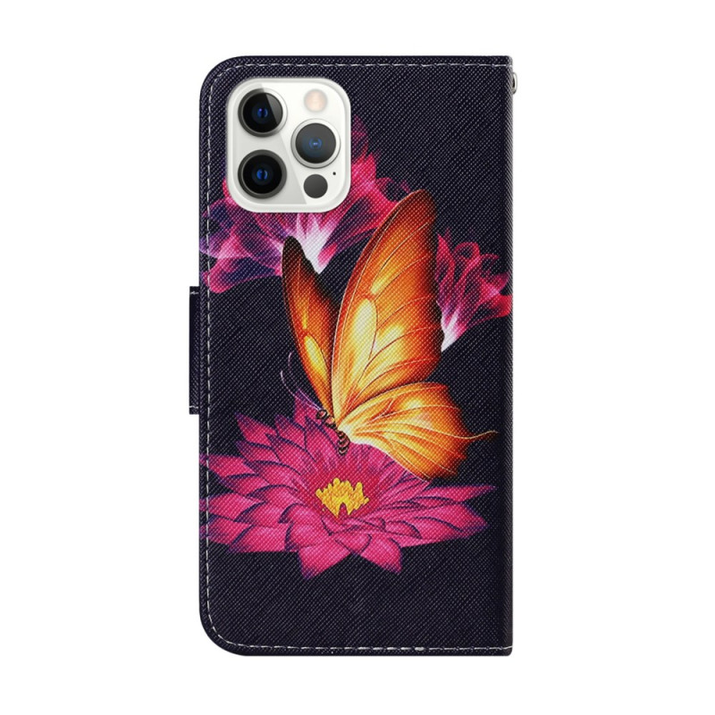 Protege tu iPhone 13 Pro Max con estilo con esta sofisticada funda tipo cartera con motivos de mariposas y flores. Cuenta con prácticas ranuras para tarjetas, una colgante de muñeca segura y un soporte integrado para tener las manos libres.