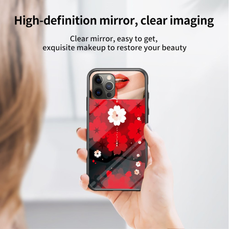 Protege tu iPhone 13 Pro Max con estilo gracias a esta funda multifunción. Su innovador diseño combina un práctico espejo, un anillo de soporte plegable y un delicado motivo floral sakura para personalizar tu teléfono.