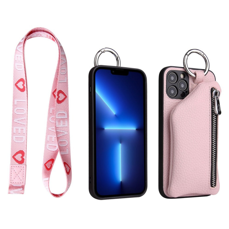 Protege tu iPhone 13 Pro Max con estilo con esta funda monedero desmontable. Con un práctico bolsillo con cremallera para guardar tarjetas y dinero en efectivo, combina estilo y funcionalidad. La colgante de mano incluida facilita su transporte.