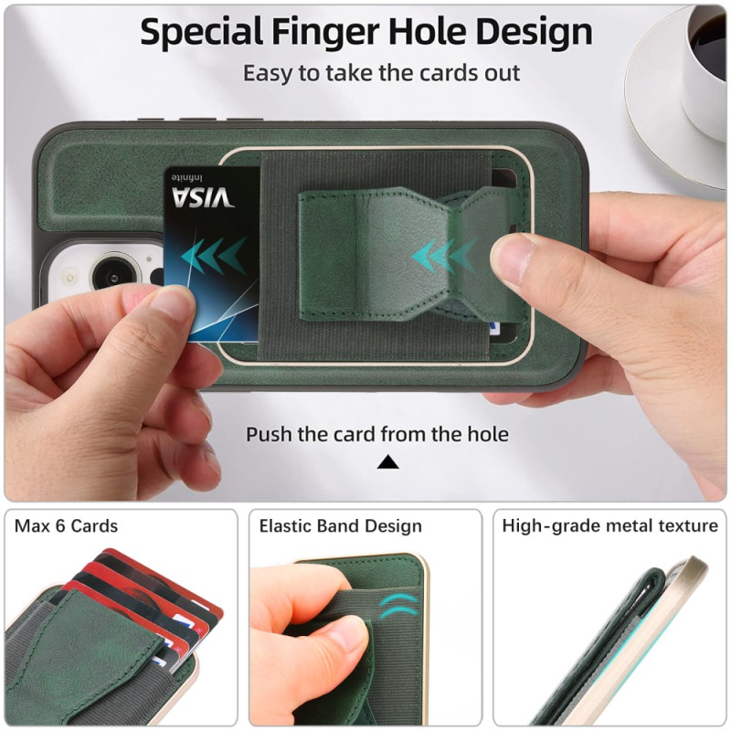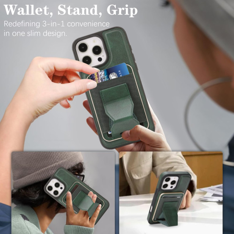 Proteja su iPhone 13 Pro con estilo gracias a esta funda de piel PU de primera calidad compatible con MagSafe. Su tarjetero extraíble incorpora un soporte ajustable y puede alojar hasta seis tarjetas, ofreciendo practicidad y estilo para el uso diario.