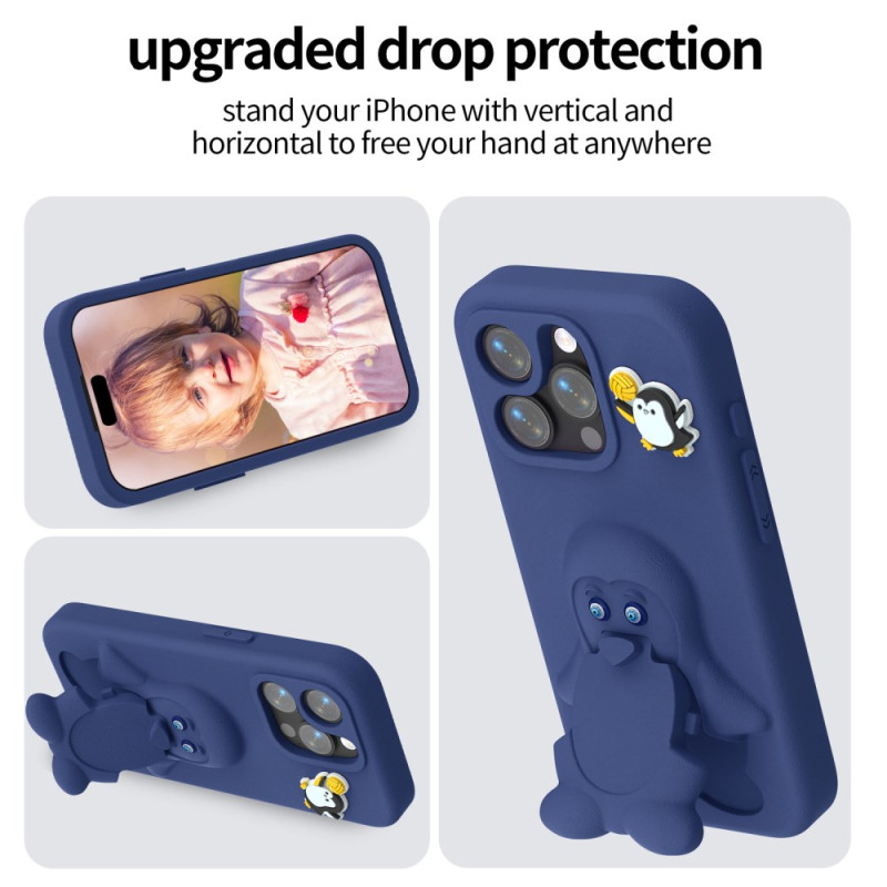 Protege tu iPhone 13 Pro con estilo gracias a esta adorable funda con diseño de pingüino en relieve 3D. Fabricada en EVA ecológica y resistente a los impactos, ofrece una protección óptima con un soporte integrado y ajustable para tus vídeos y navegación.