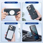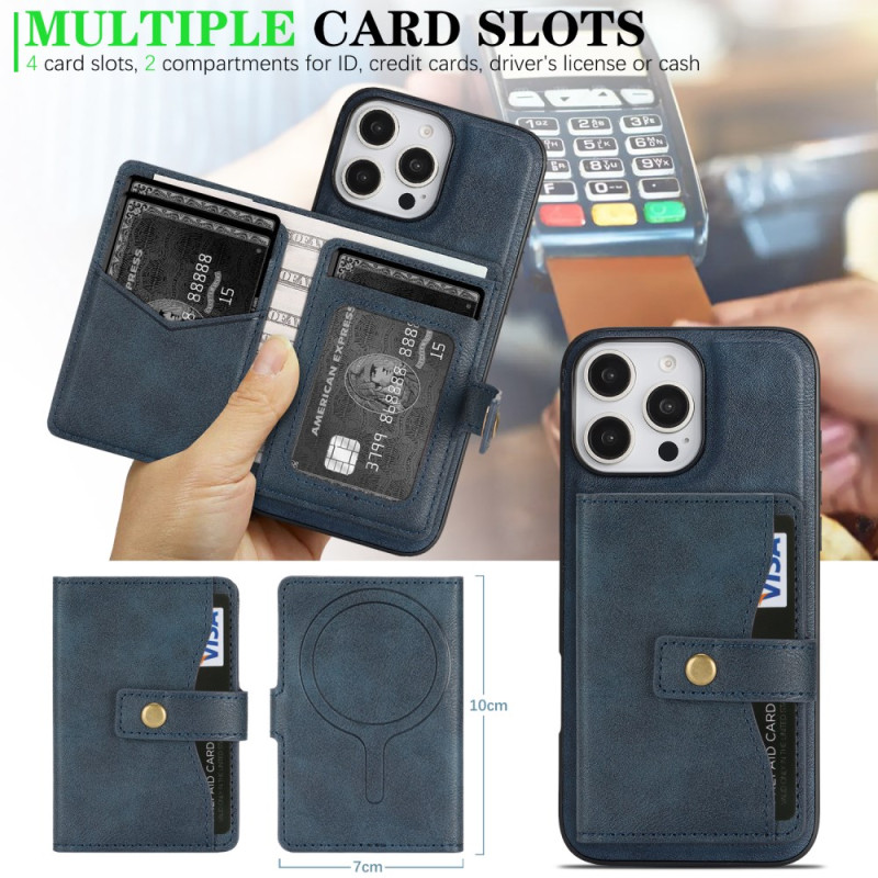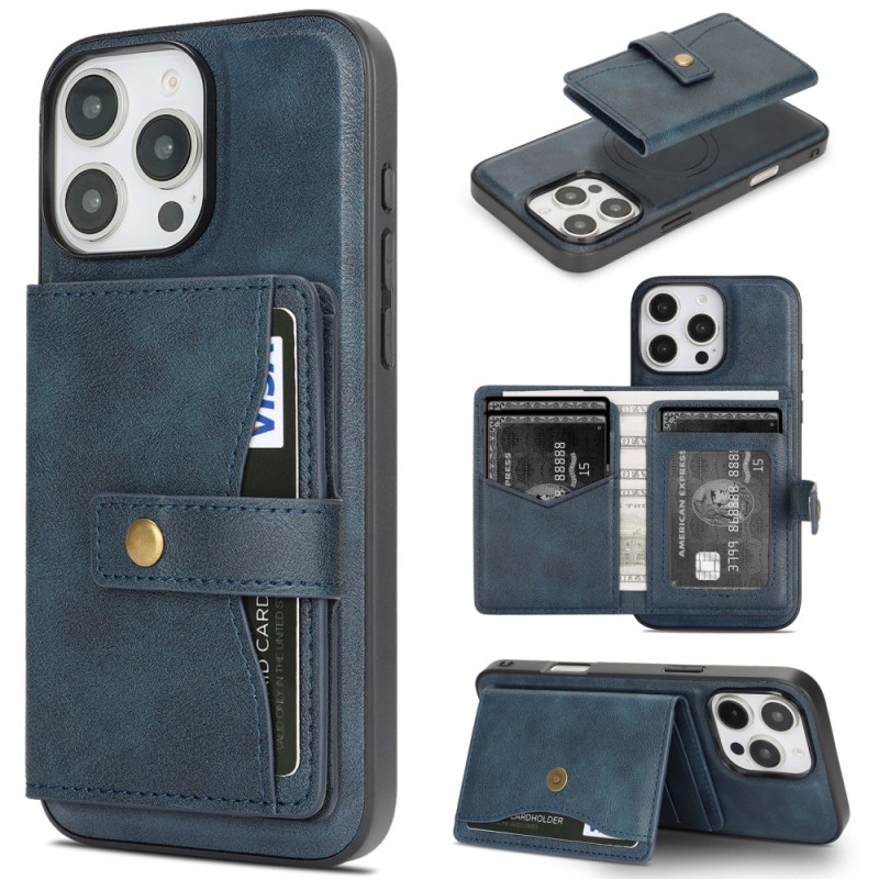 Funda multifunción para iPhone 13 Pro que combina protección, practicidad y elegancia. Compatible con MagSafe, con tarjetero magnético desmontable y soporte ajustable integrado. Perfecta para guardar tus tarjetas y disfrutar de una visualización manos libres.