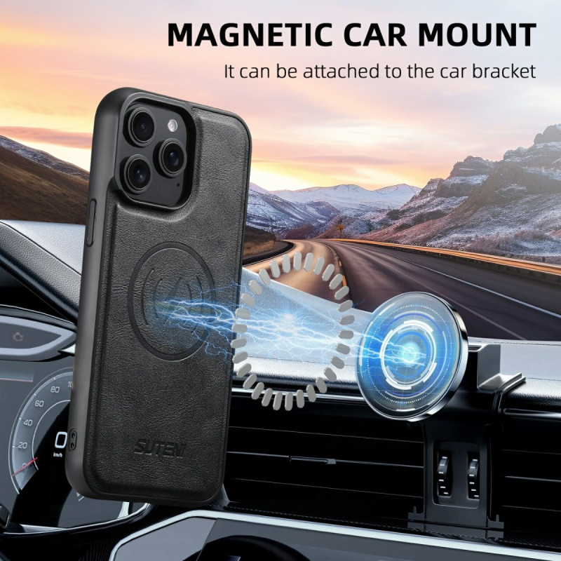 Descubre la funda SUTENI para iPhone 13 Pro, que combina elegancia y protección óptima. Compatible con MagSafe y con un anillo magnético integrado, permite una carga inalámbrica perfecta y una fijación segura a los accesorios magnéticos.