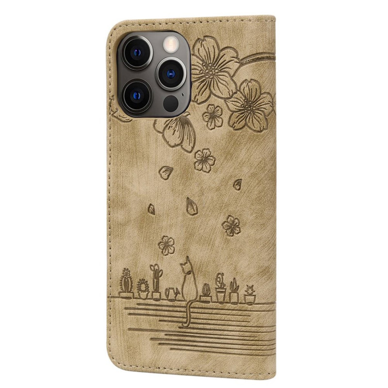 Protege tu iPhone 13 Pro con estilo con esta funda cartera de piel de PU de primera calidad. Su refinado diseño con un gato y flores de cerezo combina protección contra golpes con un práctico tarjetero y función de soporte. Incluye cierre magnético seguro y colgante de mano para facilitar su transporte diario.