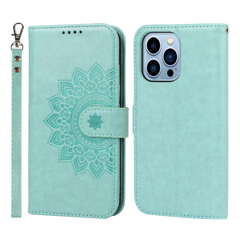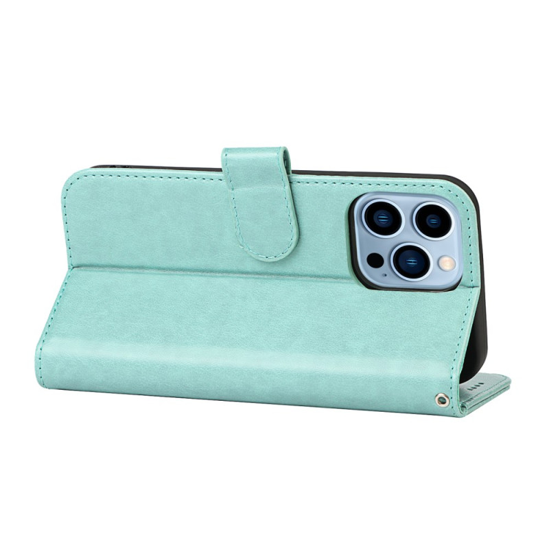 Descubre esta elegante funda cartera en piel de PU texturizada para iPhone 13 Pro. Diseño sofisticado con estampado en relieve, protección total contra caídas e interior de TPU suave. Disfruta de múltiples compartimentos para tarjetas y billetes, soporte manos libres y una práctica colgante de mano para facilitar el transporte diario.