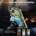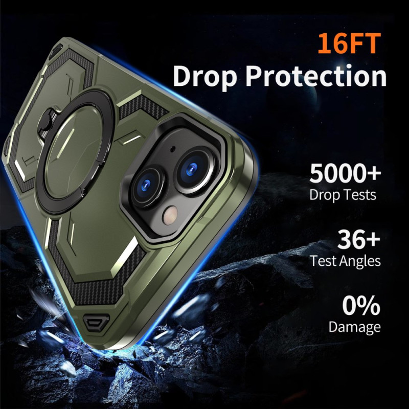 Descubre nuestra funda híbrida de PC + TPU para iPhone 13. Con un anillo magnético de sujeción, ofrece una sólida protección contra golpes y caídas. Su diseño ergonómico garantiza un agarre cómodo, mientras que sus precisos recortes facilitan el acceso a todos los botones y puertos.