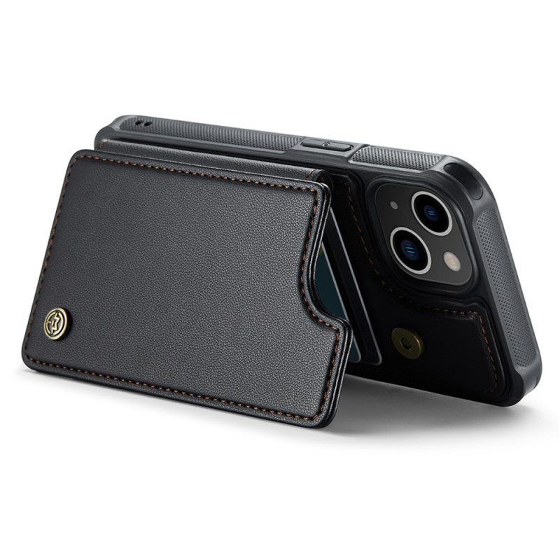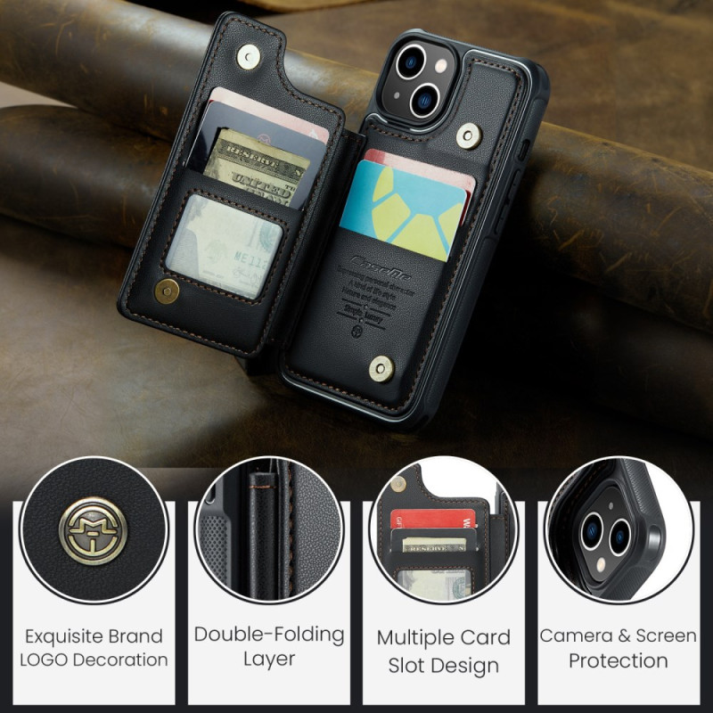 Descubre nuestra funda protectora de gama alta para iPhone 13. Fabricada en piel de PU texturizada y TPU resistente, ofrece protección RFID, ranuras para tarjetas, doble cierre magnético y función de soporte. Con bordes elevados para proteger la pantalla y la cámara, esta funda combina funcionalidad y estilo para un uso diario práctico.