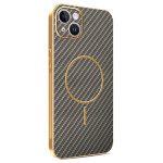 Descubre nuestra elegante y duradera funda protectora para el iPhone 14 Plus. Fabricada en TPU flexible con acabado galvánico y textura de fibra de carbono, ofrece una excelente absorción de impactos y un atractivo diseño. Con bordes elevados para proteger la pantalla y la cámara, esta funda combina funcionalidad y estilo.