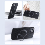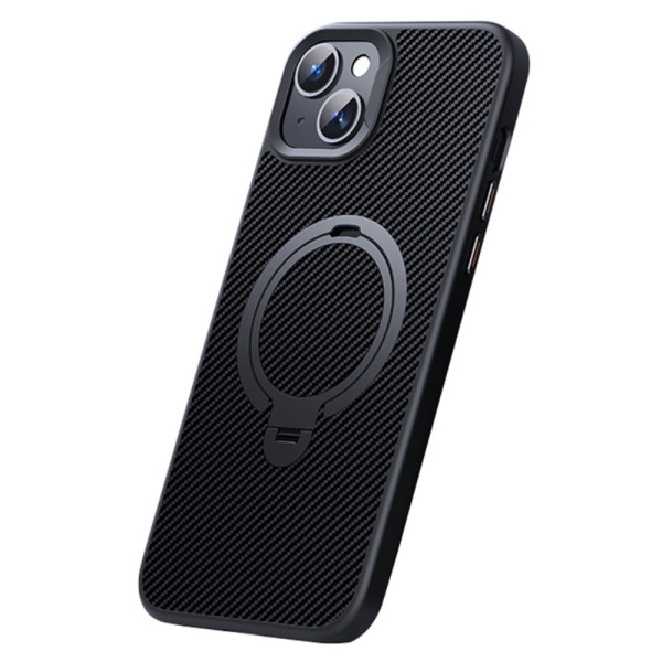 Descubre nuestra robusta funda protectora para iPhone 14 Plus. Fabricada en PC+TPU, ofrece una protección óptima contra arañazos y golpes. Su soporte giratorio de 360° permite un uso manos libres, mientras que su textura de fibra de carbono añade estilo y agarre. Compatible con cargadores MagSafe para una carga inalámbrica eficaz.