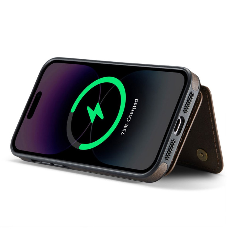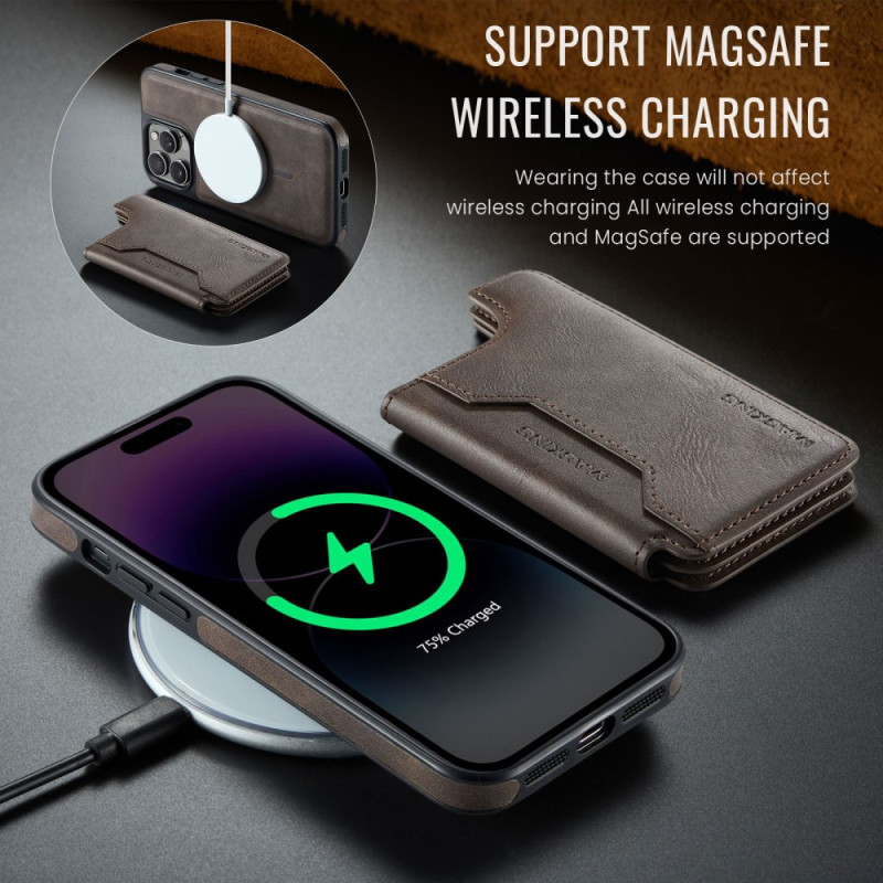 Descubre la funda MAGKING para iPhone 14 Pro Max, que combina durabilidad y funcionalidad. Fabricada en PC, TPU y PU, ofrece una excelente absorción de impactos y durabilidad a largo plazo. Su soporte ajustable facilita el cambio entre leer y ver películas, con un ángulo máximo de 135°. El diseño magnético integrado garantiza la compatibilidad con la carga inalámbrica MagSafe. El diseño 2 en 1 permite separar y combinar fácilmente la delgada funda y la cartera gracias a la conexión magnética compatible con MagSafe. La cartera incorpora material de bloqueo RFID para proteger su información privada de escaneos no autorizados. Con 7 ranuras para tarjetas y un bolsillo lateral, ofrece un almacenamiento versátil para tus objetos esenciales.