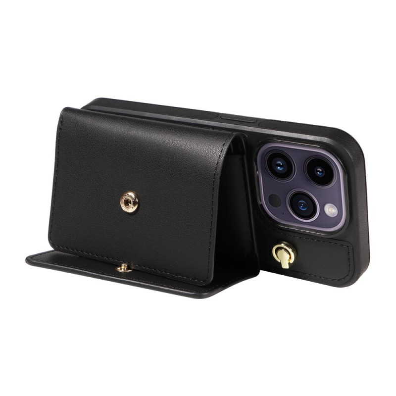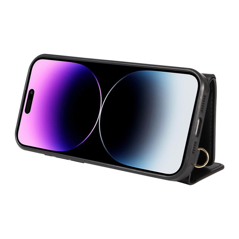 Elegante funda multifunción que combina protección de primera calidad y practicidad. Con múltiples ranuras para tarjetas, una colgante ajustable para el hombro y un soporte integrado para un uso óptimo con las manos libres todos los días.