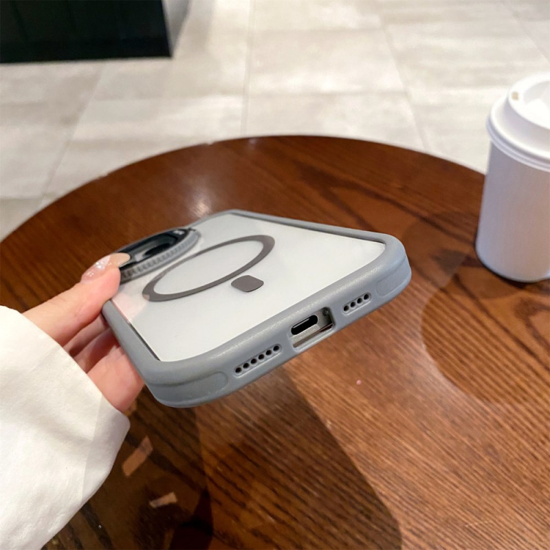 Protege tu iPhone 14 Pro Max con estilo gracias a esta innovadora funda con pie de apoyo integrado y protección de cristal para la cámara. Compatible con MagSafe, combina un diseño transparente con una protección óptima para tu smartphone.