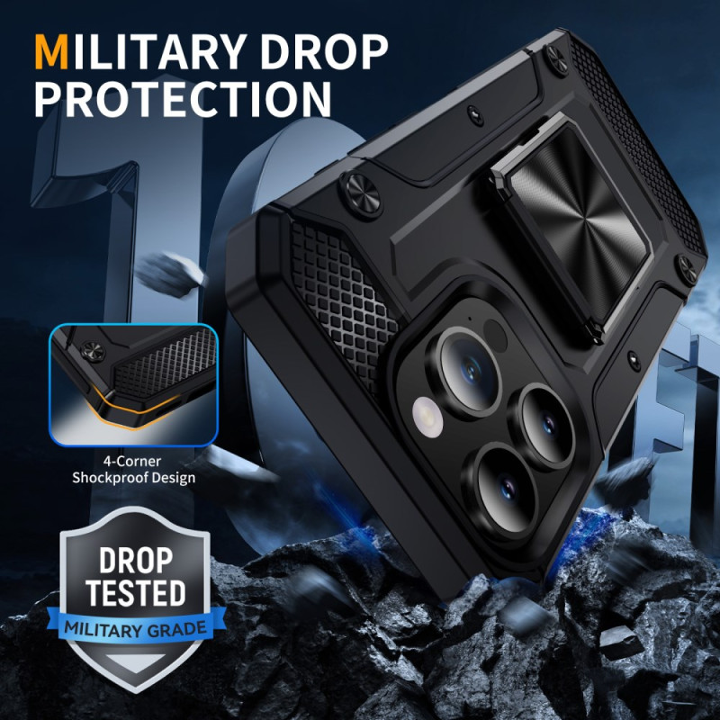 Protégez votre iPhone 14 Pro Max avec cette coque à double couche offrant une protection militaire anti-chocs. Son anneau rotatif à 360° fait office de support mains libres pratique, tandis que les bords surélevés protègent l'écran et la caméra.