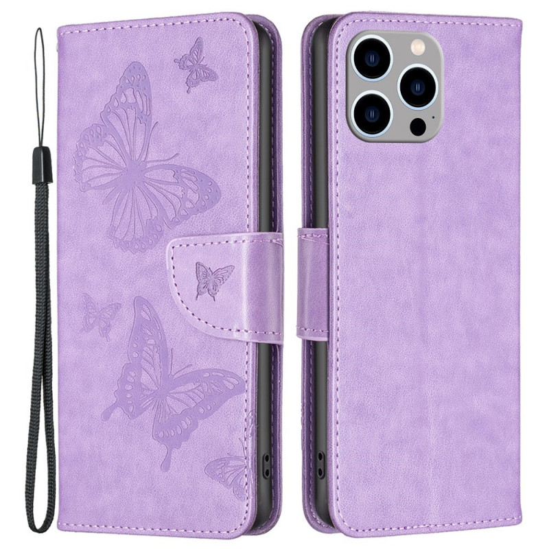 La funda de polipiel con estampado de mariposa viene con una cómoda colgante para transportar el iPhone 14 Pro Max.