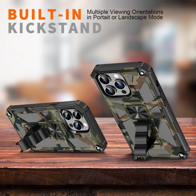 Descubre esta funda Camouflage, que viene con un soporte extraíble, para asegurar tu iPhone 14 Pro Max.