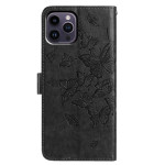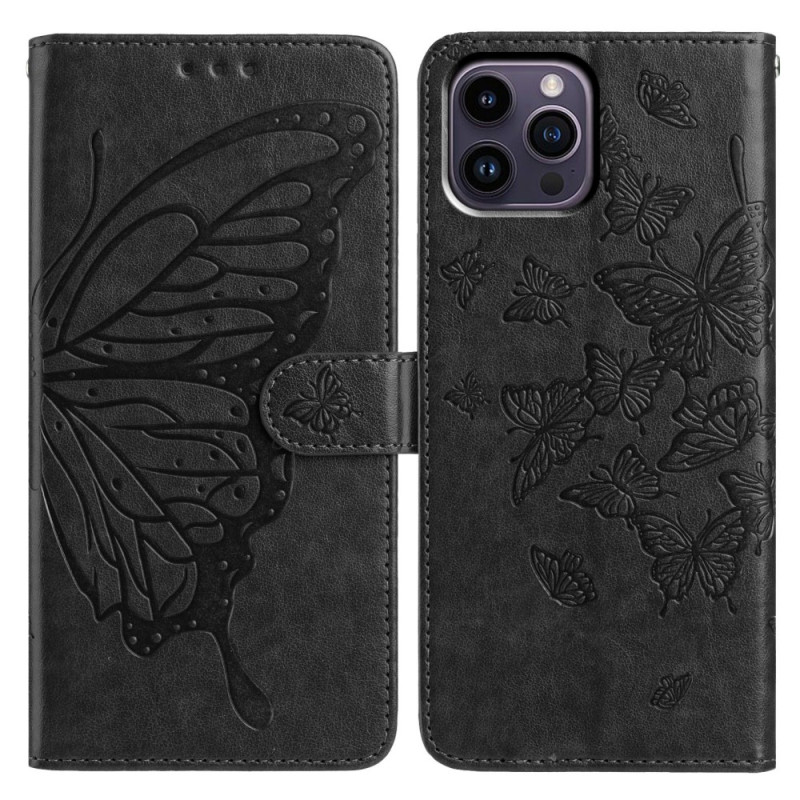 Elegante funda monedero con motivo de mariposa impresa para iPhone 14 Pro. Fabricada en piel de PU de alta calidad, ofrece una protección duradera y un diseño práctico. Con su soporte integrado, cierre magnético y colgante de mano, esta funda combina funcionalidad y estilo para un uso diario óptimo.