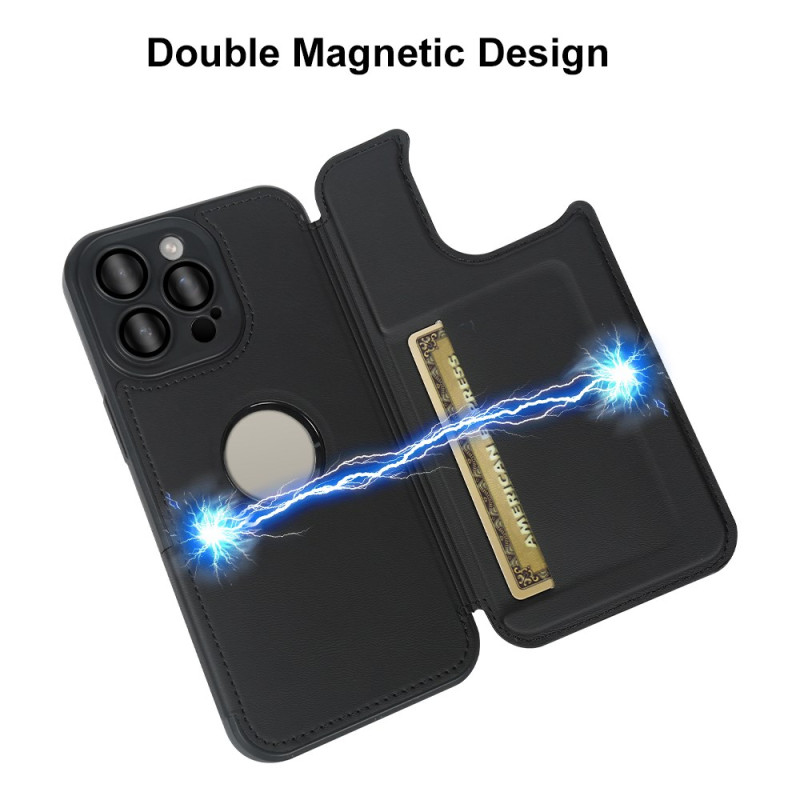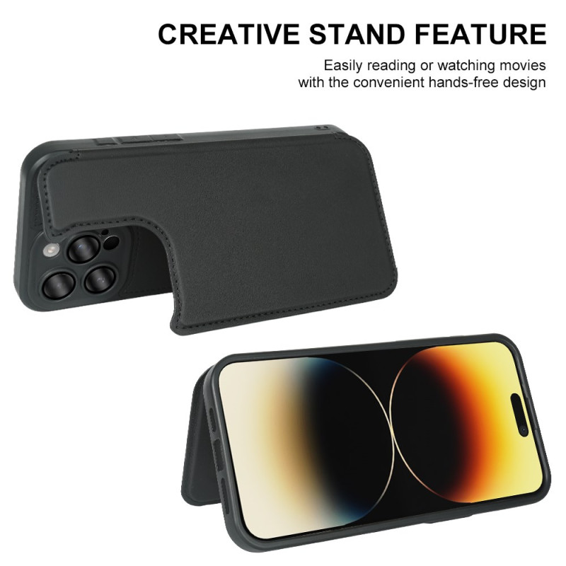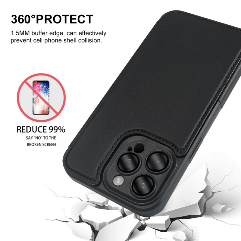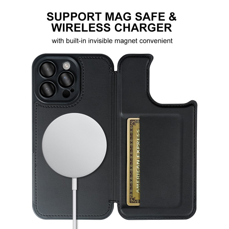 Funda magnética ecológica para iPhone 14 Pro con soporte integrado y protección RFID. Fabricada con materiales reciclados con certificación RCS, esta funda ofrece carga inalámbrica compatible con MagSafe, una ranura segura para tarjetas y protección total contra arañazos y pequeños golpes. Su elegante diseño con solapa de piel garantiza un perfil delgado a la vez que protege eficazmente el teléfono.