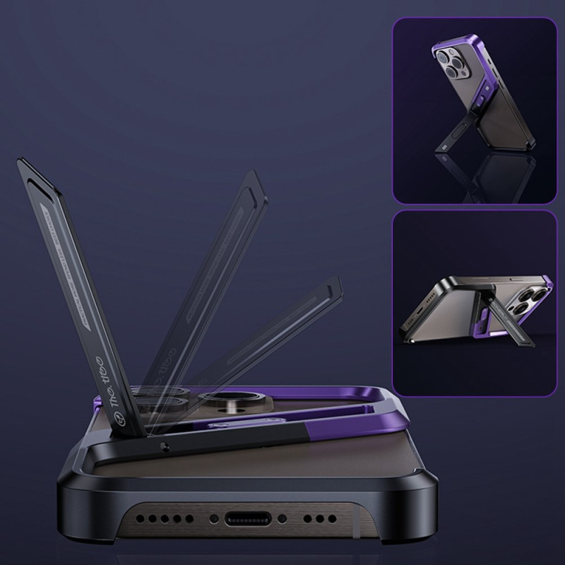 Descubre nuestra funda de gama alta para iPhone 14 Pro. Fabricada en aleación de aluminio de alta calidad, ofrece una protección duradera y un diseño elegante. El soporte en forma de S integrado permite una cómoda visualización en diversas posiciones. Su diseño sin marco garantiza una excelente disipación del calor.