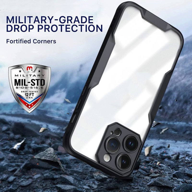 Descubre nuestra funda protectora definitiva para el iPhone 14 Pro. Con certificación militar, resiste caídas de hasta 3,6 metros. Gracias a sus bordes elevados y a la absorción de impactos, tu teléfono estará protegido de arañazos y golpes. Su preciso diseño permite acceder fácilmente a todas sus funciones.
