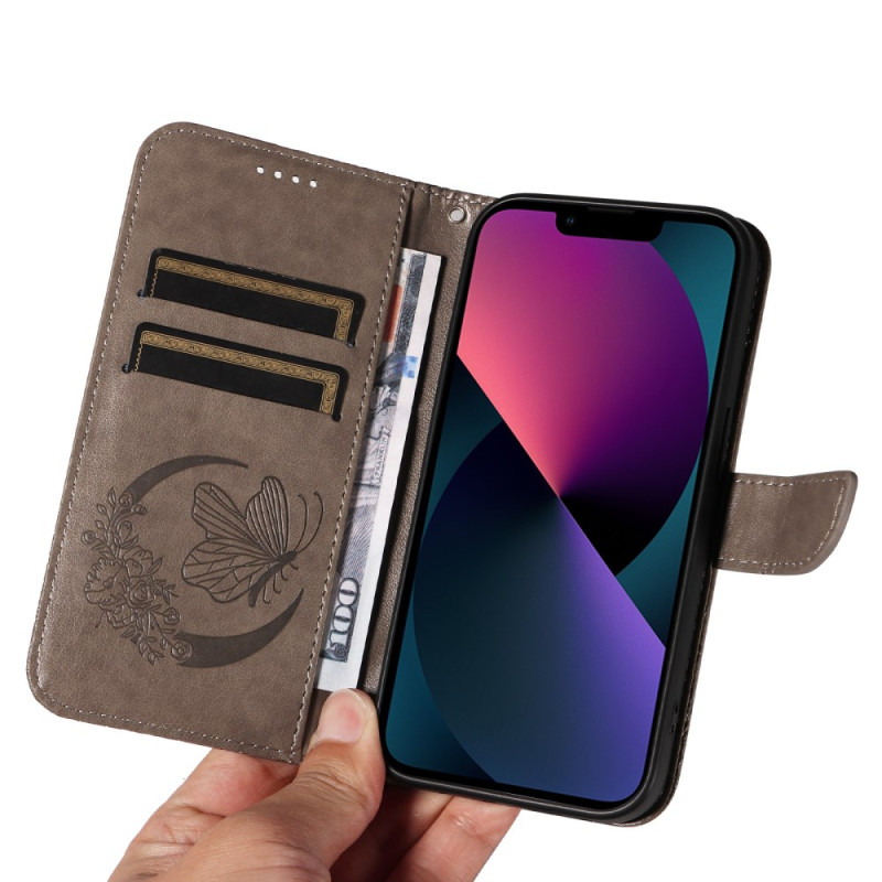 Descubre nuestra elegante funda para iPhone 14 en piel de PU de alta calidad. Con un motivo de mariposa impreso, ofrece una sólida protección gracias a su funda interior de TPU mate. Con sus ranuras para tarjetas, su compartimento para billetes y su función de soporte, esta funda combina practicidad y estilo para ofrecer la mejor experiencia de uso.