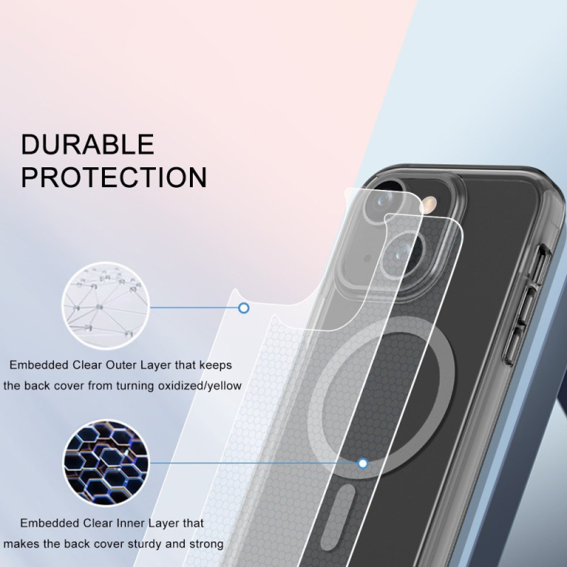 Descubre nuestra funda magnética 3 en 1 para iPhone 14. Fabricada en PC y TPU de alta calidad, ofrece una protección completa contra golpes y caídas. Con su protector de pantalla integrado y su compatibilidad con MagSafe, esta funda combina funcionalidad y elegancia para tu dispositivo.