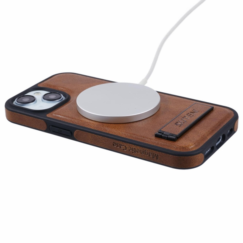 Descubra nuestra funda de piel de gama alta para iPhone 14. Con tecnología magnética compatible con MagSafe, ofrece una protección completa con un soporte integrado para ver la pantalla con las manos libres. Su diseño elegante y funcional la hace práctica para el uso diario.