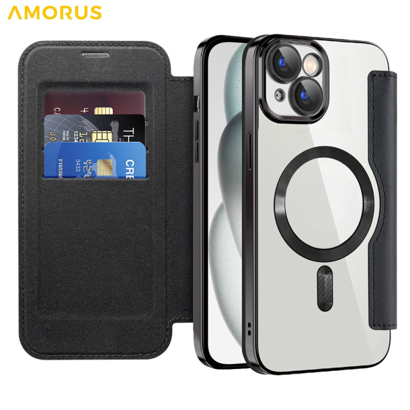 Descubra nuestra funda compatible con MagSafe para iPhone 15 Plus. Combinando estilo y funcionalidad, ofrece protección RFID, un tarjetero integrado y una compatibilidad perfecta con los accesorios MagSafe. Su elegante diseño en piel y su resistente construcción garantizan una protección óptima para su dispositivo.