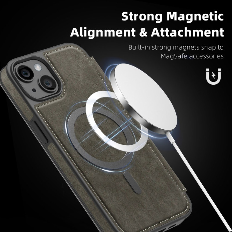 Descubra nuestra funda para el iPhone 15 Plus, que combina estilo y funcionalidad. Compatible con MagSafe, ofrece protección RFID, ranuras para tarjetas y una resistente estructura de piel y TPU. Protege tu dispositivo con estilo y practicidad.