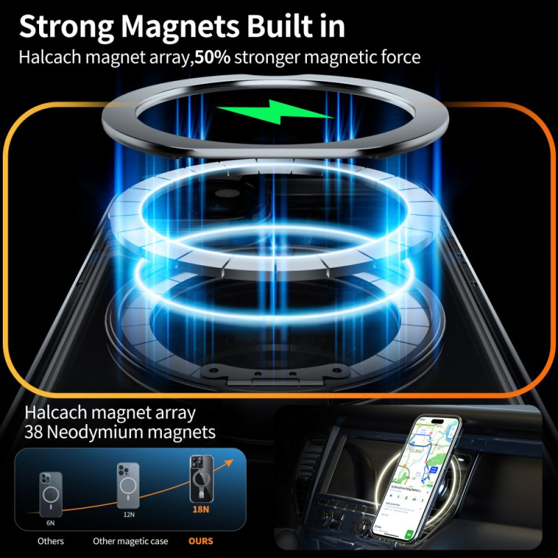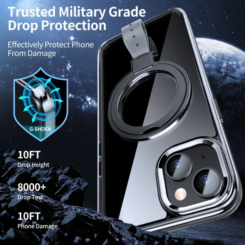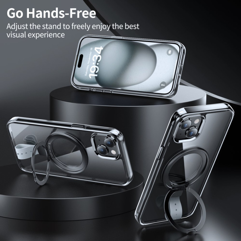 Descubra nuestra funda magnética para iPhone 15 Plus, que combina protección y funcionalidad. Fabricada en PC transparente de alta calidad, ofrece protección de nivel militar contra caídas, al tiempo que preserva la estética de tu teléfono. Su soporte giratorio de 360° y su cómodo agarre garantizan una experiencia de uso óptima. Equipada con potentes imanes compatibles con MagSafe, esta funda ofrece un 50% más de fuerza magnética. Con recortes precisos para facilitar el acceso a todos los puertos y botones, es el accesorio perfecto para su iPhone 15 Plus.