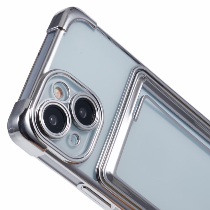 Descubre nuestra elegante funda protectora para el iPhone 15 Plus. Fabricada en TPU de alta calidad, ofrece durabilidad y flexibilidad. Con su tarjetero integrado y su acabado galvanizado, combina practicidad y estilo. La protección reforzada en las cuatro esquinas garantiza una protección óptima contra los golpes.