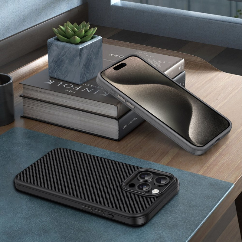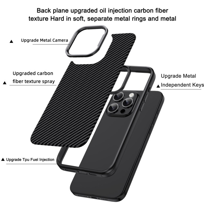 Descubre la funda IPAKY para iPhone 15 Plus, que combina estilo y protección. Fabricada en TPU de alta calidad con una elegante textura de fibra de carbono, ofrece una durabilidad excepcional y un agarre mejorado. Su marco metálico alrededor de la lente y sus botones metálicos independientes proporcionan una protección adicional y un uso táctil preciso.