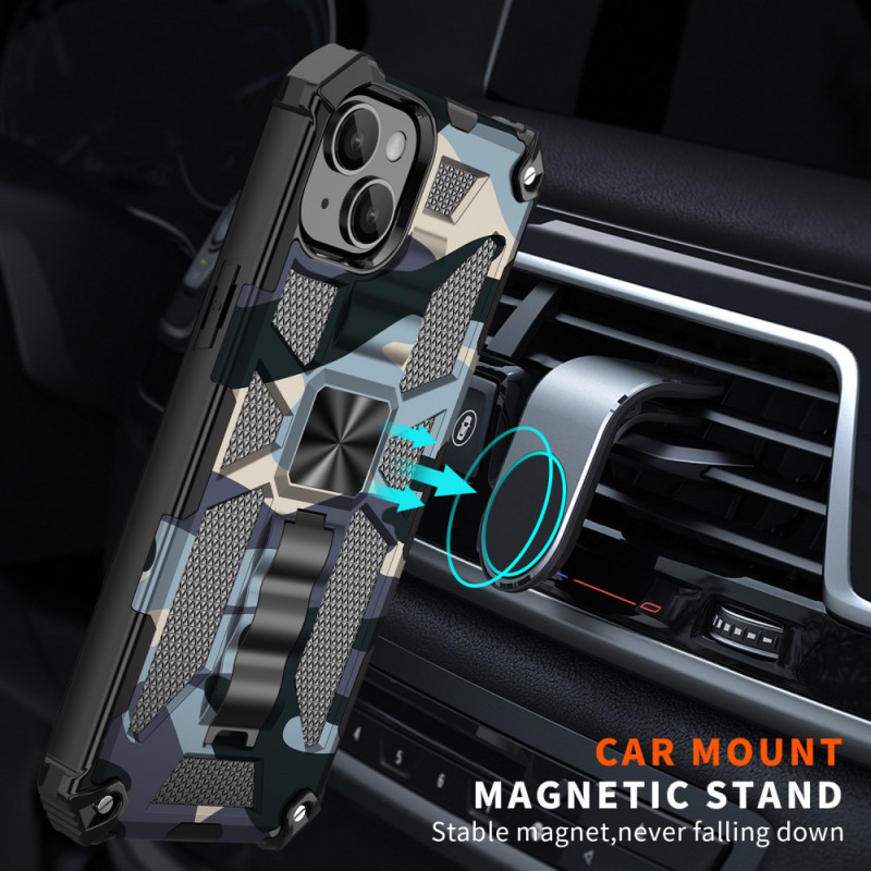 Descubre nuestra funda resistente para iPhone 15 Plus, que ofrece protección de doble capa con su diseño de PC+TPU. Con un soporte integrado para ver cómodamente con las manos libres, esta funda combina funcionalidad y durabilidad. Compatible con soportes magnéticos para coche, ofrece protección de grado militar contra golpes y arañazos.
