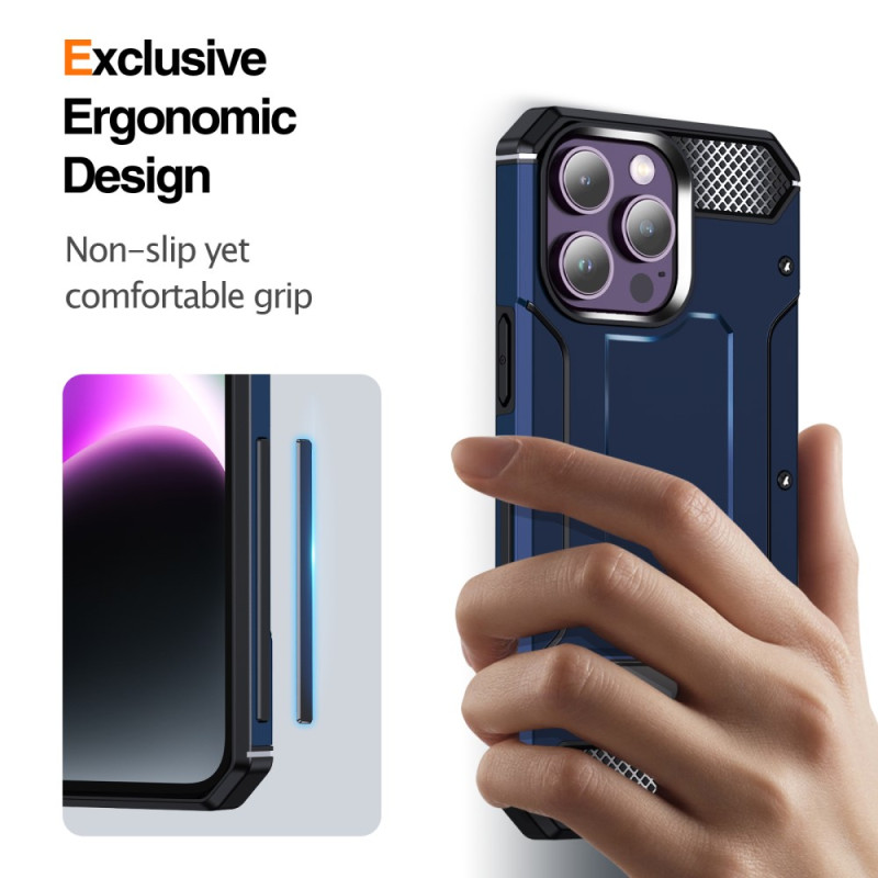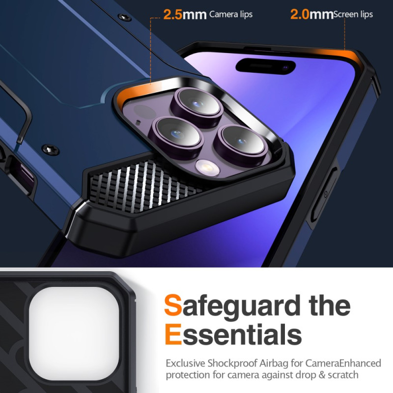 Funda Protege tu iPhone 15 Pro Max con esta ultrarresistente que incorpora un práctico soporte extraíble para usarlo con las manos libres.