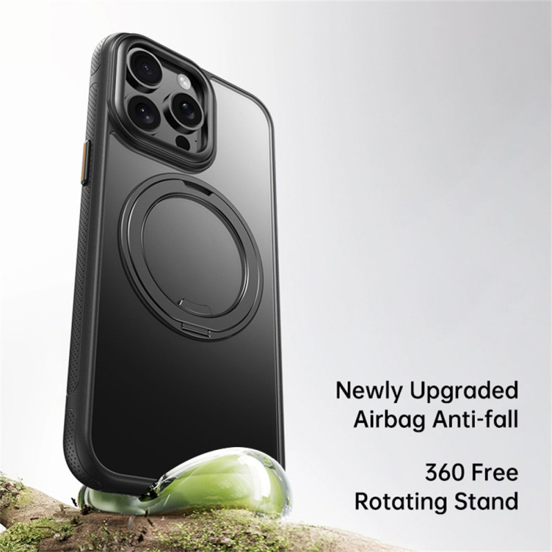 Descubre nuestra funda de gama alta para iPhone 15 Pro Max. Con un soporte giratorio de 360°, ofrece una protección óptima sin dejar de ser compatible con la carga inalámbrica MagSafe. Su elegante diseño combina comodidad en la mano y funcionalidad, con protección reforzada para la cámara y aberturas precisas para los altavoces.