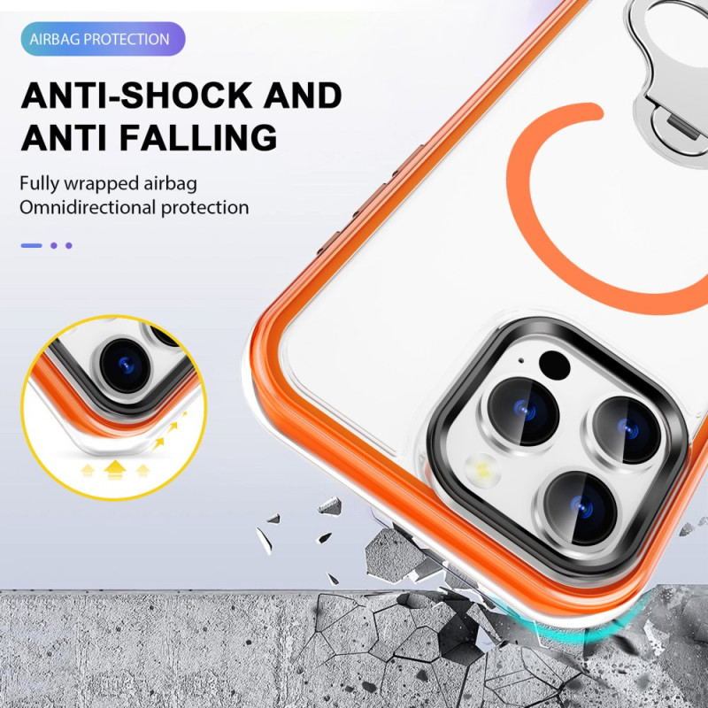 Descubre nuestra robusta funda híbrida para iPhone 15 Pro Max. Con protección acolchada por aire, un soporte giratorio de 360° y un anillo magnético integrado, ofrece una protección óptima y una funcionalidad versátil. Perfecta para quienes buscan durabilidad y practicidad.