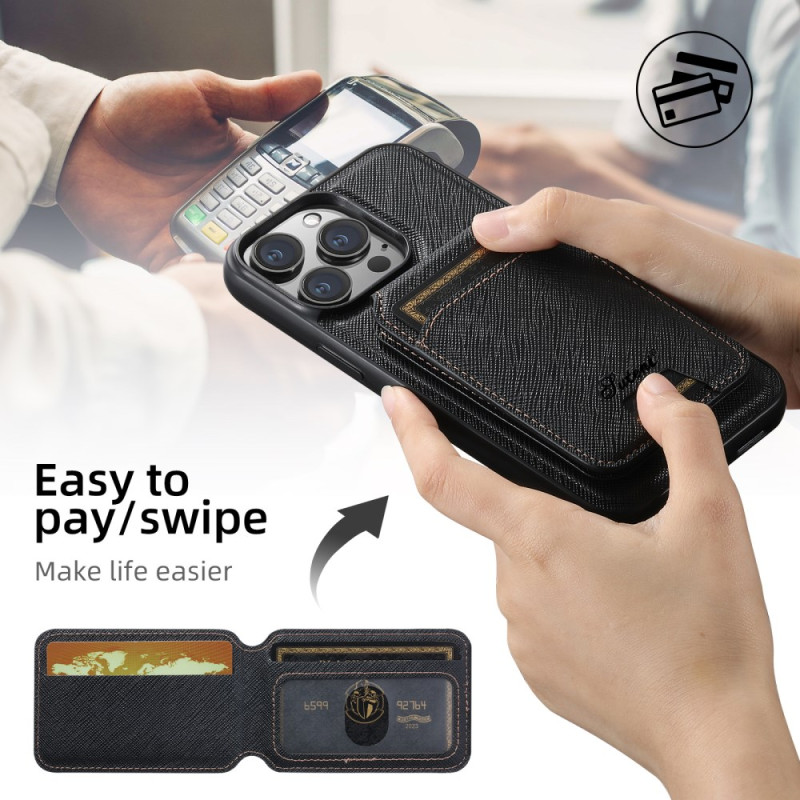 Descubre nuestra versátil funda de piel texturizada para iPhone 15 Pro Max. Con tarjetero extraíble, función de soporte y compatibilidad con MagSafe, combina estilo y funcionalidad. Su fabricación en piel de PU y TPU ofrece una protección óptima contra arañazos y golpes.