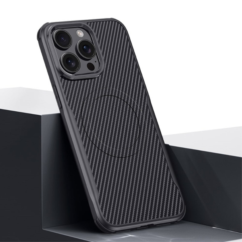Descubre nuestra funda protectora de gama alta para iPhone 15 Pro Max. Compatible con MagSafe, combina seguridad y estilo con su textura de fibra de carbono. Su material respetuoso con la piel, su resistencia a los golpes y su protección contra la contaminación la convierten en un accesorio esencial para tu dispositivo.