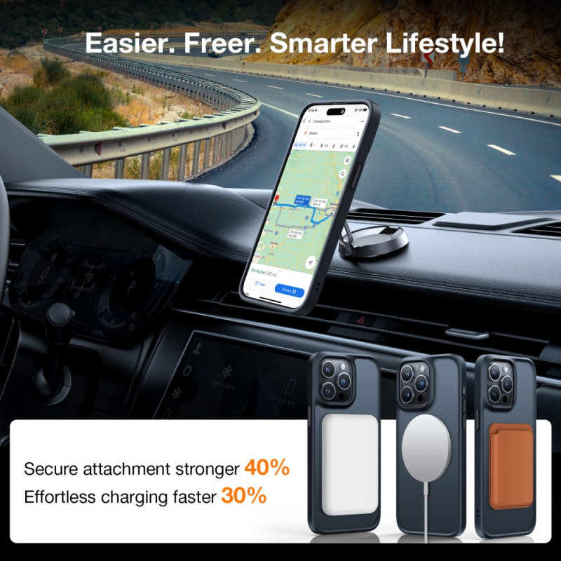 Descubre la funda TORRAS para iPhone 15 Pro Max, que combina protección militar con compatibilidad MagSafe. Su construcción de PC y TPU ofrece una protección óptima contra los impactos, mientras que su acabado mate suave al tacto resiste las huellas dactilares. Con sus bordes elevados y la tecnología X-SHOCK, su teléfono estará protegido de arañazos y caídas.