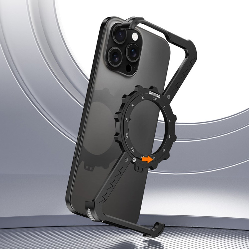Descubre nuestra innovadora funda para iPhone 15 Pro Max. Con un soporte giratorio de 360°, es compatible con MagSafe, está fabricada en aleación de aluminio duradera y cuenta con protección reforzada en las esquinas. Su exclusivo diseño en forma de Z combina estética y funcionalidad para ofrecer la mejor experiencia de usuario.